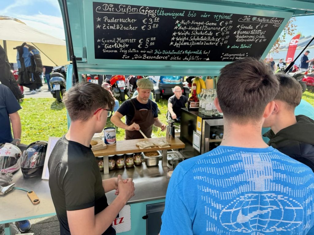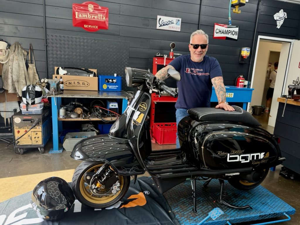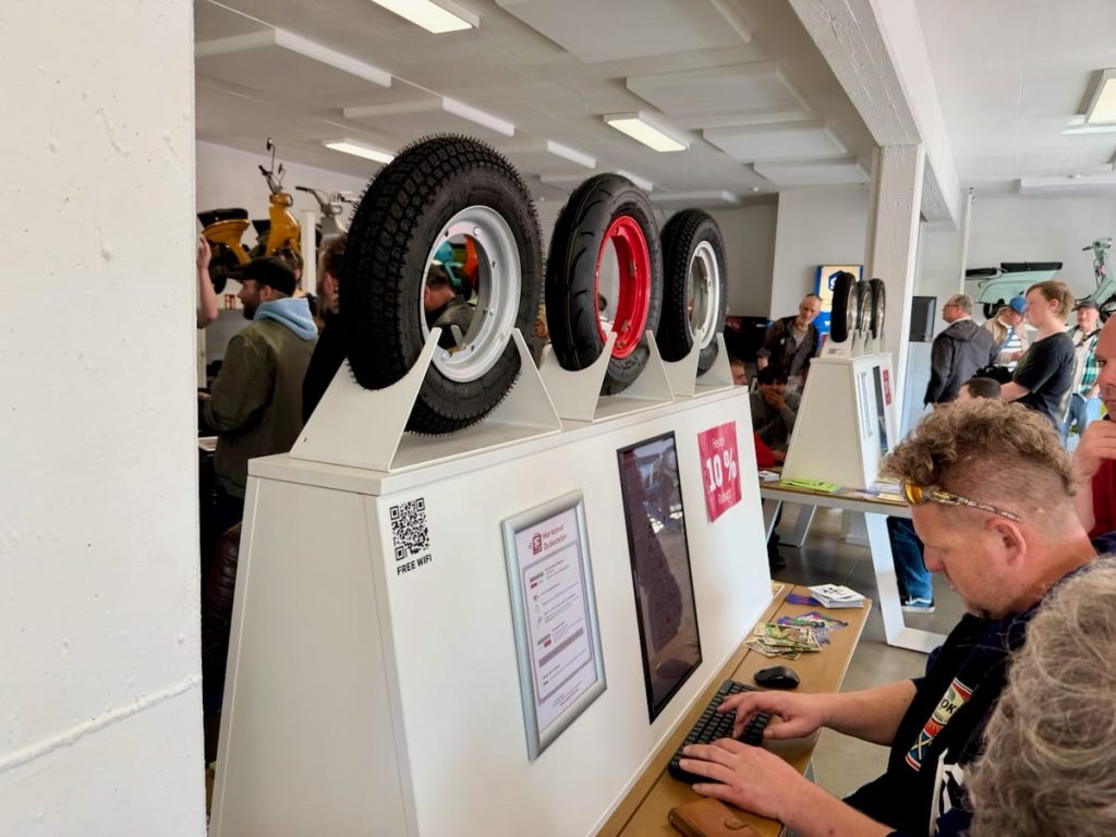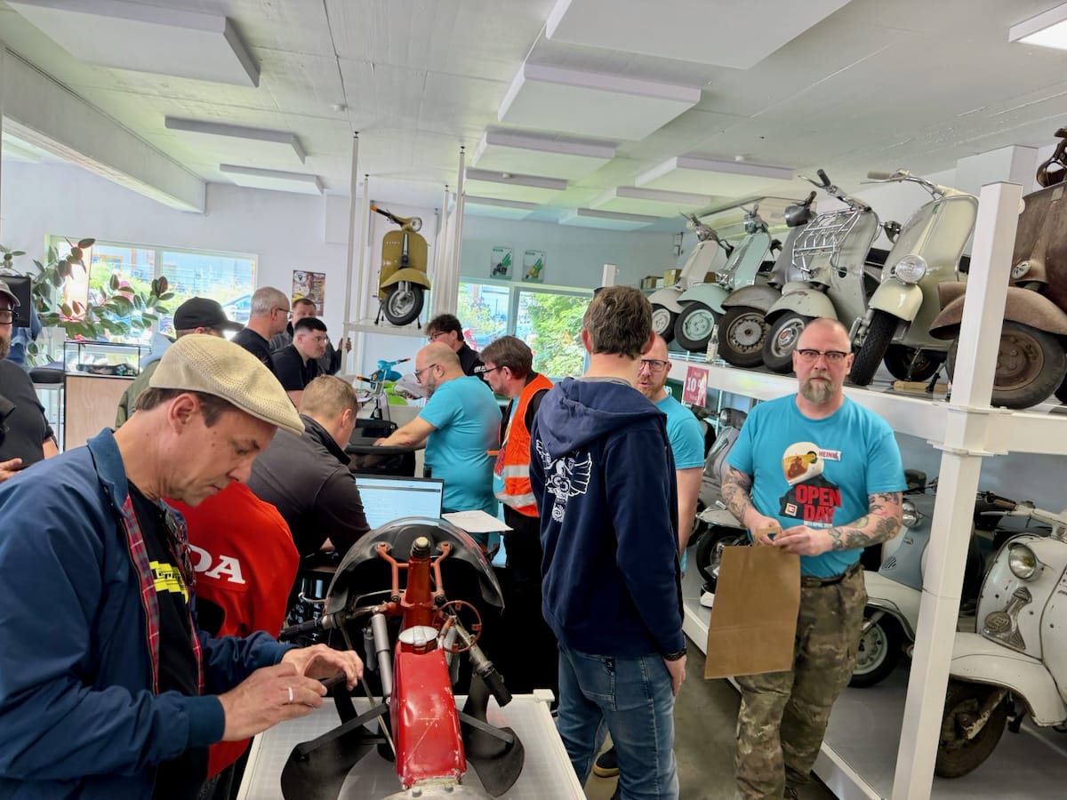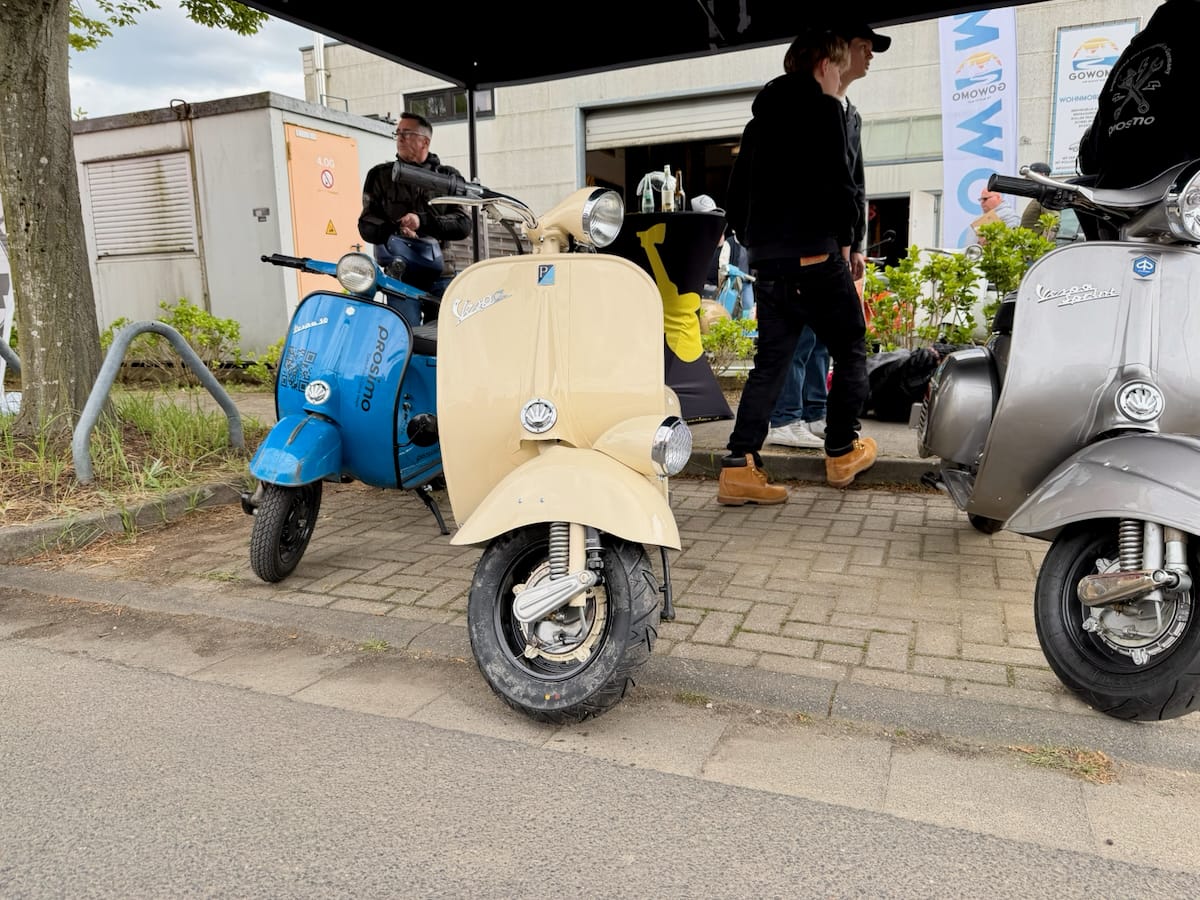 Seit 1992 versorgt das Scooter Center die Szene mit Ersatzteilen, Tuning und allem, was das Rollerherz begehrt. Die Open Days sind längst kein Geheimtipp mehr, sondern fester Termin im Kalender vieler Fahrerinnen und Fahrer. Die Hütte war voll – von der Rohrlenker-Vespa von 1954 über 70er-, 80er- und 90er-Modelle bis zu den aktuellen GTSen und den Lambretta-Modellen, für deren Renaissance in Deutschland das Scooter Center ein gutes Stück Verantwortung trägt. Dazu: moderne Automatik-Scooter, Rennroller, Custom-Umbauten, schöne O-Lack-Kisten – und an jeder Ecke eine Maschine, die läuft. Und damit meinen wir nicht nur die Roller: auch Kaffeemaschinen, Eismaschinen, Grills und Zapfanlagen liefen auf Volllast.