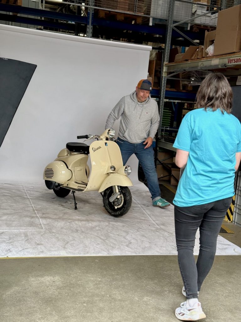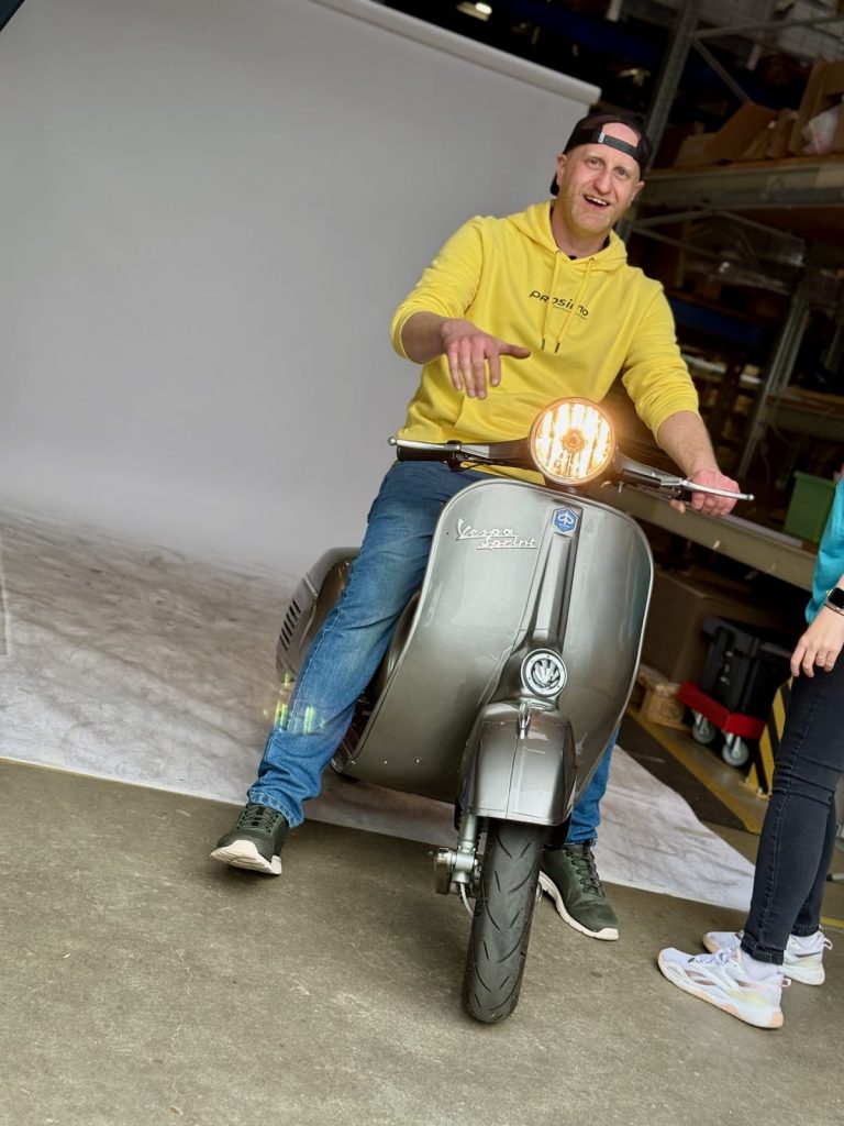 Warum wir das hier teasern? Weil Prosimo die erste Elektro-Vespa ist, die in Italien offiziell mit Gutachten zugelassen werden kann. Wer weiß, was Italien in Sachen Homologation für Oldtimer, Umbauten und Elektrifizierung fordert, der weiß auch, wie groß dieser Schritt ist. Für unsere italienischen Kunden öffnet sich damit ein Tor, das bisher verschlossen war: Elektromobilität im klassischen Vespa-Rahmen – und zwar legal, gutachterlich abgesichert und auf den Straßen Italiens.